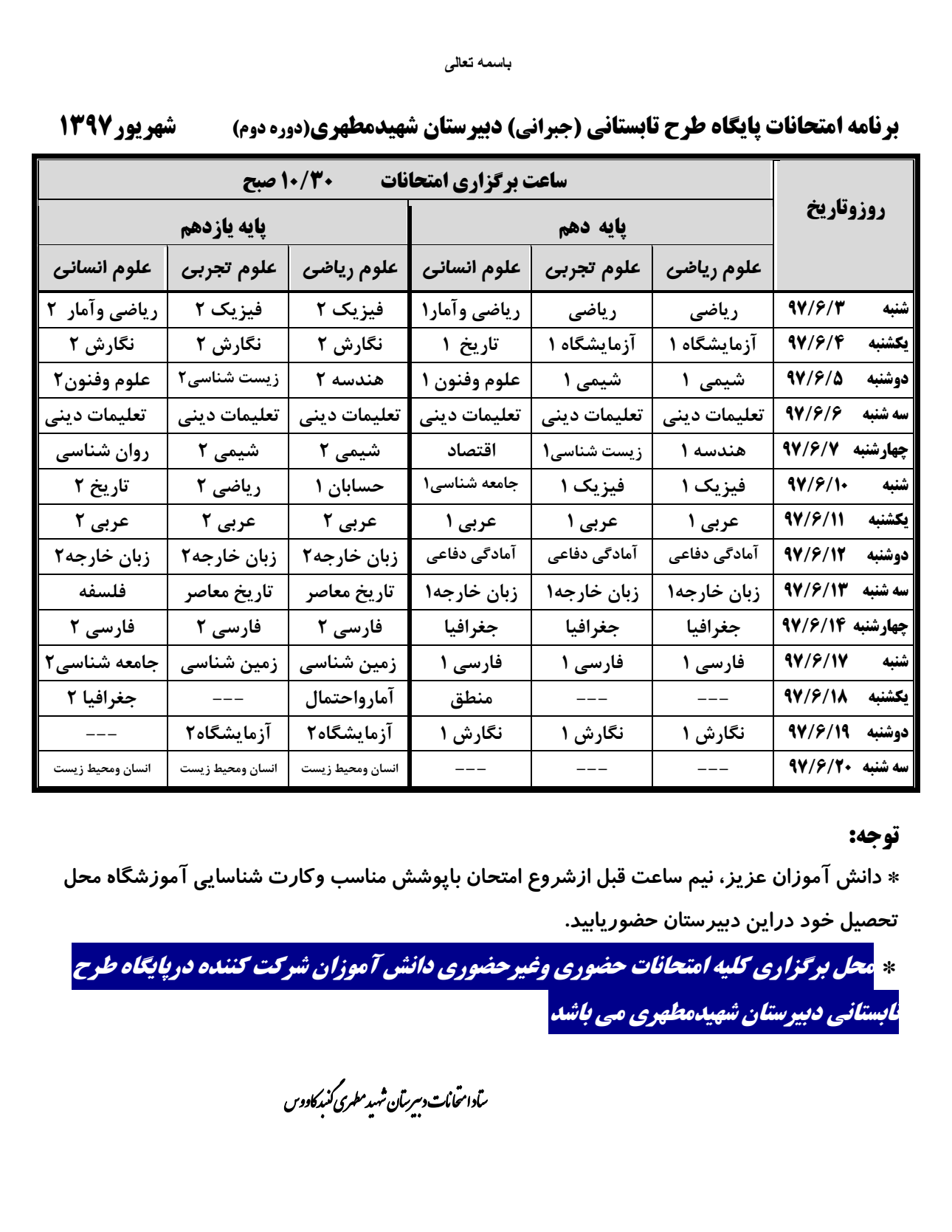 به اطلاع كليه اولياء و دانش آموزان پايه هاي دهم و يازدهم ميرساند، با توجه به محدوديت زماني جهت ثبت نام قطعي در سامانه دانش آموزي هرچه سريع تر به دبيرستان مراجعه فرماييد.