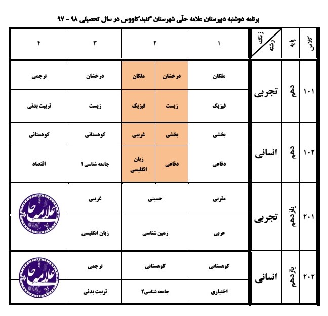 قابل توجه دانش آموزان عزیز ، برنامه روز دوشنبه 1397/07/02 جهت اطلاع ارسال شد. * ساعت حضور 7:15