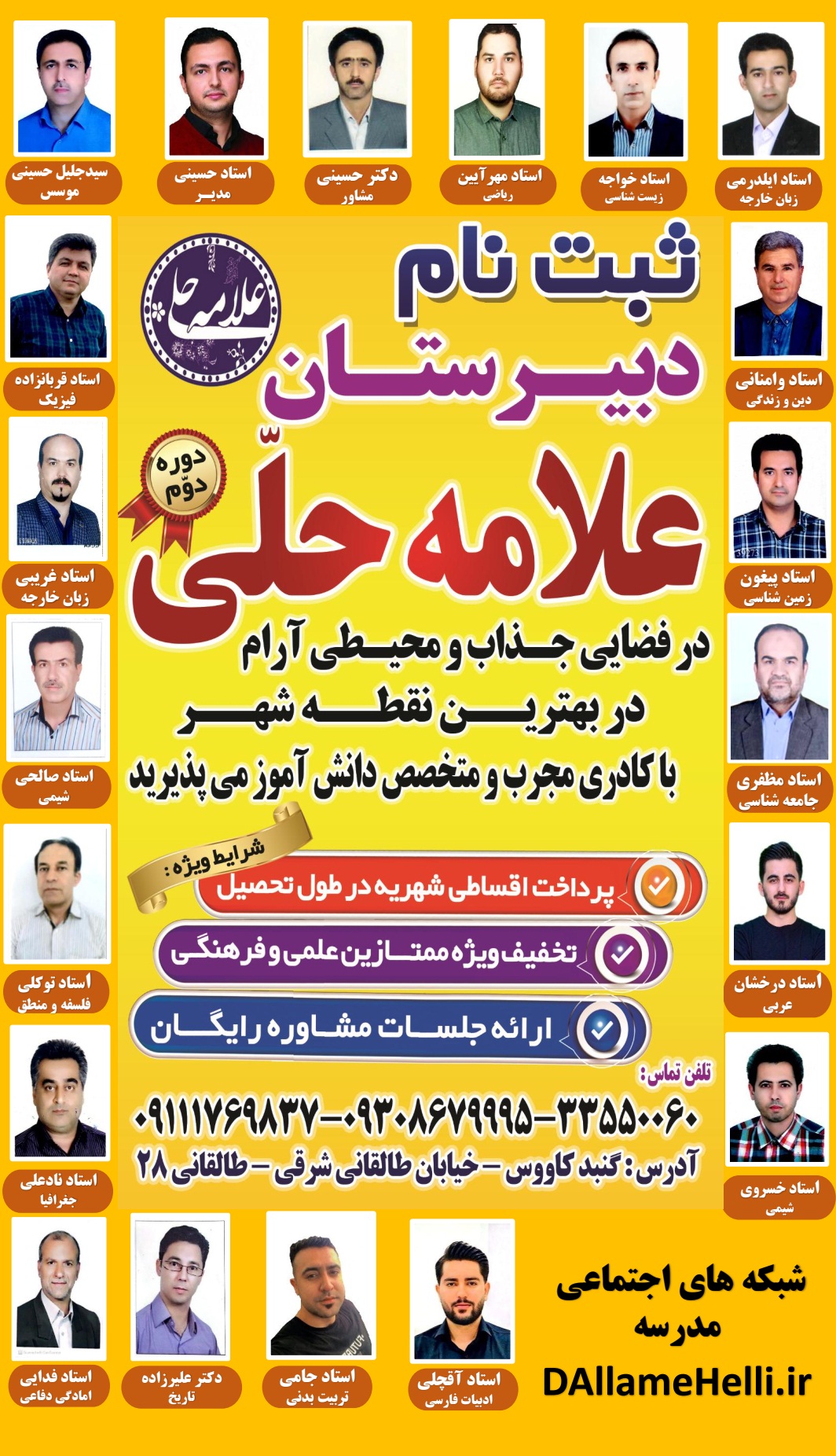 ثبت نام آغاز شد+ اساتید دبیرستان علامه حلّی گنبدکاووس در سال تحصیلی 1405-1404